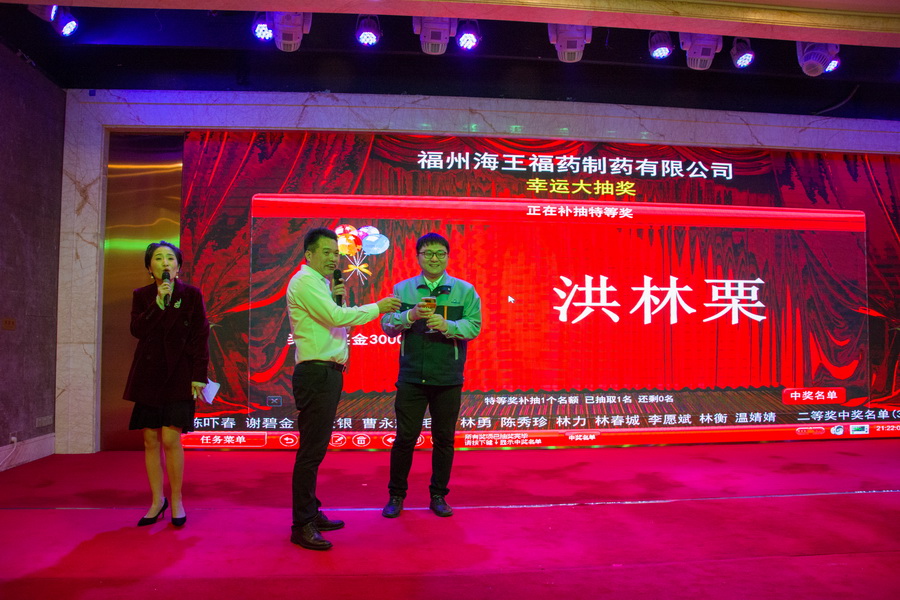2022年1月15日下午,以“稳固﹣提升﹣跨跃,赢战2022”为主题的海王福药2021年度经营工作总结暨表彰年会,在福州隆重召开,海王生物副总裁、海王福药董事长张翼飞,海王福药副董事长、总经理郑施波等公司高管及全体中层干部和优秀员工共300人齐聚一堂,共同回顾总结海王福药2021年的成绩,共谋2022发展规划。